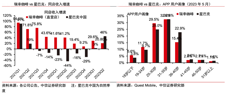 經典案例:根據各公司公告、中信證券研究部等綜合資訊表明,從市場反饋來看,瑞幸具備較強的產品研發能力,2021 年公司推出 113 款新品,2022 年推出 108 款新 飲品,領先行業水平。疊加出色的消費洞察和營銷能力,2021年以來推出了生椰拿鐵、厚乳拿鐵、椰云拿鐵、生酪拿鐵、冰吸 生椰拿鐵等“爆品”,帶動公司單量快速增長,同店收入持續同比雙位數增長。