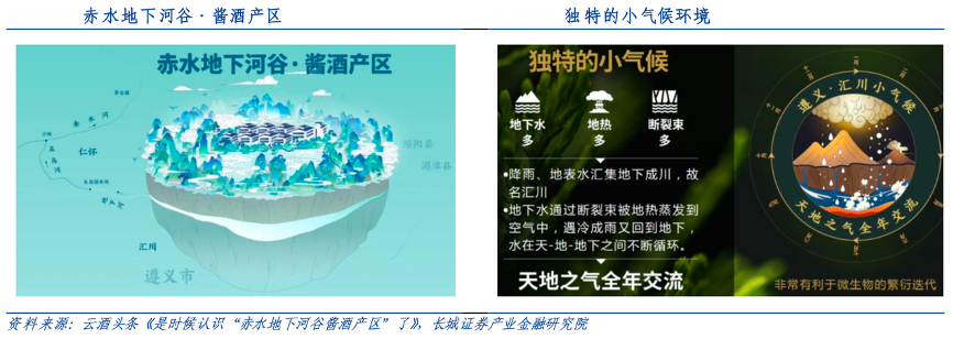 經典案例:根據云酒頭條、長城證券產業金融研究院等綜合資訊表明,貴州珍酒釀酒水源,便取自石子鋪赤水地下河谷上游水。不僅水質優于地表水,純凈而甘洌,還有硬度低、微量元素豐富等特點。從小環境看,匯川區周圍豐富的地下水在地熱作用下通過斷裂束蒸發到空氣中,遇冷成雨又回到地下,循環往復形成天地之氣全年交流的“遵義匯川小氣候”,讓釀酒微生 物繁衍迭代的質量和時間比其它地方更好更長。