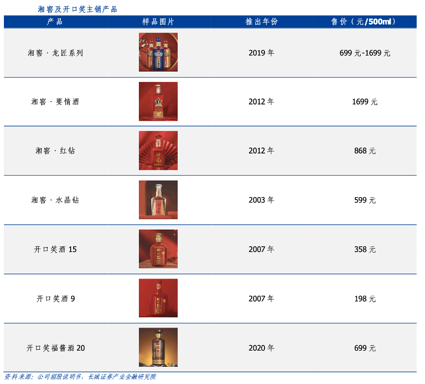 經典案例:根據公司招股說明書、長城證券產業金融研究院等綜合資訊表明,開口笑品牌誕生于1992年,屬湖南知名的白酒品牌,專注中端白酒市場, 香型涵蓋濃香型及醬香型白酒產品。從產品結構來看,湘窖酒業“湘窖”和“要情”品牌市場表現非常好,已經成為湖南地區高端接待、商務宴請以及大眾中高端消費的主流產品,而“開口笑”則已經成為湘酒質優價宜的民酒、名酒。