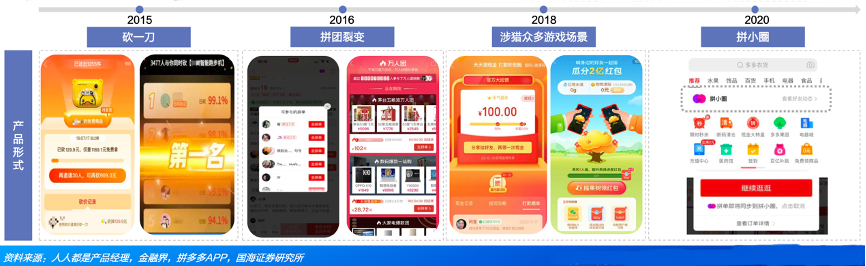 經(jīng)典案例:根據(jù)人人都是產(chǎn)品經(jīng)理、金融界、拼多多APP、國(guó)海證券研究所等綜合資訊表明,自APP上線(xiàn)至今,拼多多陸續(xù)推出多種好友互動(dòng)及游戲產(chǎn)品,2020年上線(xiàn)“拼小圈”,基于用戶(hù)好友的真實(shí)購(gòu)物行為建立內(nèi)容平臺(tái),促進(jìn)站內(nèi)“種草到?jīng)Q策”的閉環(huán)建立。