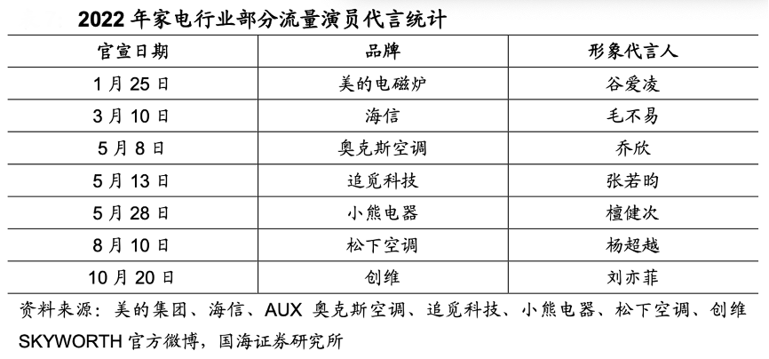經(jīng)典案例:根據(jù)美的集團(tuán)、海信、AUX奧克斯空調(diào)、追覓科技、小熊電器、松下空調(diào)、創(chuàng)維SKYWORTH官方微博、國海證券研究所等綜合資訊表明,企業(yè)可利用代言人的形象強(qiáng)化品牌“科技智能、 年輕時尚”的標(biāo)簽,為吸引更多年輕群體打下基礎(chǔ)。2022 年 5 月追覓科技宣布 張若昀為品牌代言人,公司于 2022 年 5 月 31 日晚 8 點至6 月 18 日晚上 23 點 59 分期間全渠道銷售戰(zhàn)績突破 4 億元,同比增長 900%。