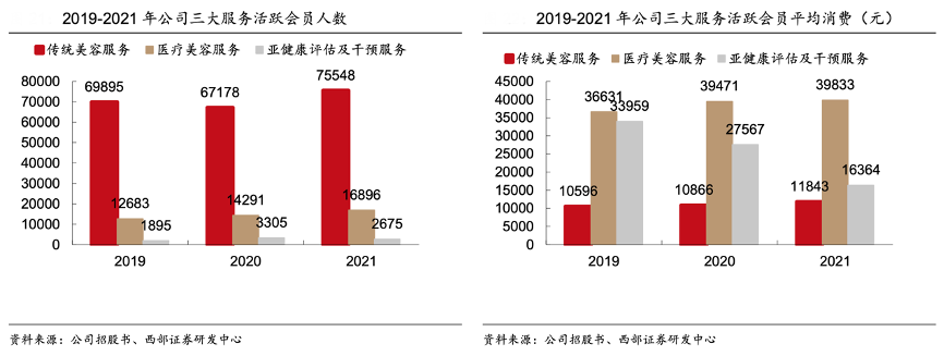 按活躍會員平均消費來看,公司傳統美容服務的活躍會員平均消費金額超過 1 萬元,醫療美容服務活躍會員平均消費金額接近 4 萬元,均在業內處于較高水平。
