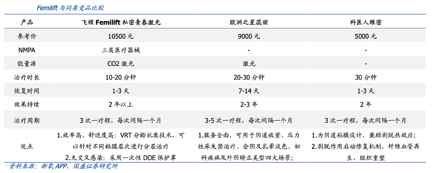 經(jīng)典案例:根據(jù)新氧APP、國盛證券研究所等綜合資訊表明,復(fù)銳醫(yī)療科技公司微創(chuàng)美容市場產(chǎn)品覆蓋多個(gè)領(lǐng)域,具體包括女性私密美容、抽脂、靜脈曲張治療。產(chǎn)品包括 FemiLift、BeautiFill by LipoLife 和 VascuLife。FemiLift 產(chǎn)品運(yùn)用 CO2 激光進(jìn)行女性私密健康修復(fù)治療,針對包括應(yīng)激性尿失禁、私密美容治療、產(chǎn)后修復(fù)、更年期后泌尿道綜合癥等問題。