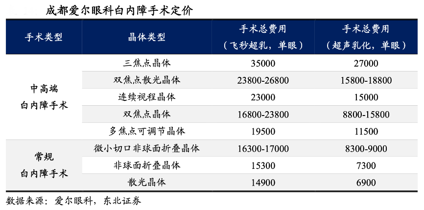 經典案例:根據愛爾眼科、東北證券等綜合資訊表明,愛爾眼科已開始全面推廣飛秒輔助激光白內障手術,是白內障手術升價的重要助力。飛秒輔助激光白內障手術是目前最先進的白內障摘除術,精度更高、安全性更高、 手術時間短、術后恢復快。