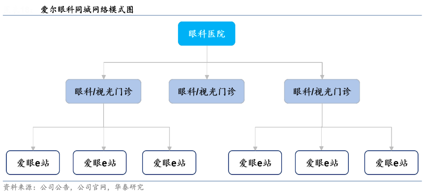 經典案例:根據(jù)公司公告、公司官網(wǎng)、華泰研究等綜合資訊表明,愛爾眼科公司逐漸完善“一城多院”的服務模式,在重點地區(qū)建立了“以眼科醫(yī)院為龍頭(一家或多家),眼科/視光門診為主體,愛眼 e 站為觸角” 的同城網(wǎng)絡診療體系。目前,公司下轄的多個地區(qū)(如長沙市、武漢市、上海市、重慶市、 沈陽市、北京市、深圳市等)已逐漸形成“橫向成片、縱向成網(wǎng)”的同城布局,促使區(qū)域內資源配置效率及共享程度進一步提高,打造橫向精細化服務網(wǎng)絡。