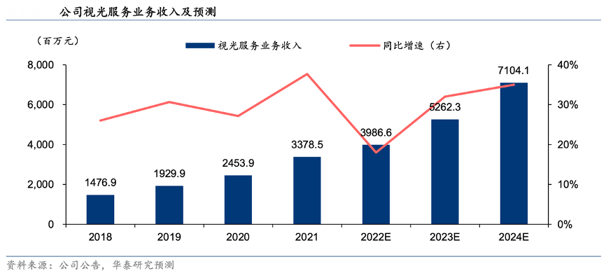 經典案例:根據公司公告、華泰研究預測等綜合資訊表明,愛爾眼科公司充分發揮業務布局全、服務網絡廣的自身優勢,能夠為屈光不正患者提供多樣、便捷的視光矯正解決方案。公司視光服務 2021 年實現收入 33.78 億元,同比增長 37.7%,占總營業收入比例已達22.5%。