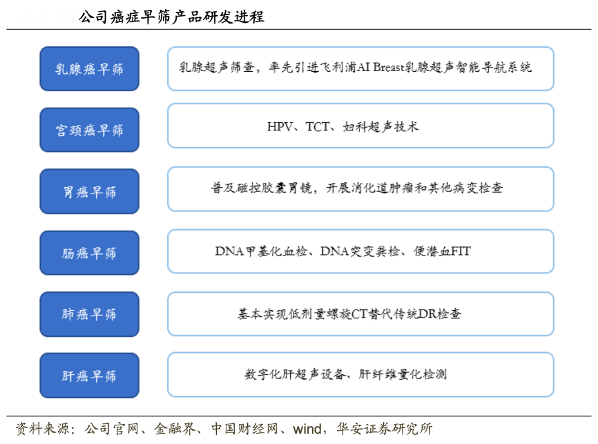 經典案例:根據公司官網、華安證券研究所等綜合資訊表明,美年健康推出癌癥早篩類新產品,優化健康管理體檢,積極布局新賽道。堅持引進先進大型設備及早篩技術,在已有消化道早篩、腦健康預警早篩、肺部早篩檢查項目基 礎上,拓展早篩新領域,開展女性乳腺超聲健康篩查和免疫力基因檢測,并將借助 大數據和 AI 技術在乳腺癌、宮頸癌、胃癌、腸癌等 6 大腫瘤早篩方面持續賦能,積 極布局早篩項目新賽道。