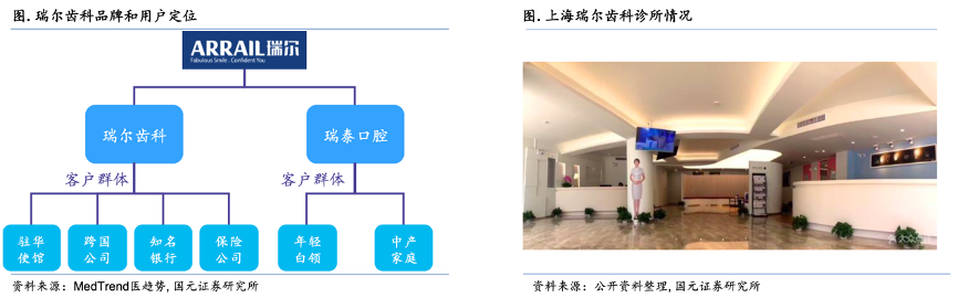 經(jīng)典案例:根據(jù)MedTrend醫(yī)趨勢(shì)、公開資料整理、國(guó)元證券研究所等綜合資訊表明,瑞爾齒科每個(gè)診所都具有全科和專科醫(yī)生,平均配置10把牙椅、8名醫(yī)生、10名護(hù)士。服務(wù)品質(zhì)高端化的同時(shí),也使得單個(gè)門診的投資成本、運(yùn)營(yíng)成本較高。2012年后,瑞爾集團(tuán)拓寬了瑞泰品牌,服務(wù)定位年輕白領(lǐng)和中產(chǎn)家庭,實(shí)現(xiàn)品牌渠道下沉。