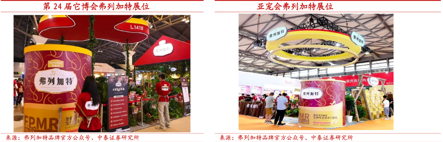 經(jīng)典案例:根據(jù)弗列加特品牌官方公眾號、中泰證券研究所等綜合資訊表明,乖寶寵物公司在“它博會”“亞寵會”等知名寵物展覽中為弗列加特品牌建立獨立展臺。為了強化產(chǎn)品的專業(yè)度,弗列加特在展會上安排研發(fā)人員詳細(xì)為用戶介紹產(chǎn)品營養(yǎng)成分、制作工藝以及相關(guān)技術(shù)專利,不斷強化自身高端貓糧的品牌定位。