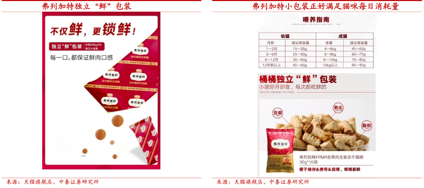 經(jīng)典案例:根據(jù)天貓旗艦店、中泰證券研究所等綜合資訊表明,乖寶寵物通過(guò)對(duì)貓咪和消費(fèi)者的細(xì)致觀察,發(fā)現(xiàn)首先貓的食量相對(duì)較小,其次,貓對(duì)食物相對(duì)挑剔,因此養(yǎng)貓人在買(mǎi)貓糧的時(shí)候,相對(duì)謹(jǐn)慎。因此給予兩大痛點(diǎn),公司采用小規(guī)格形式對(duì)弗列加特系列產(chǎn)品進(jìn)行包裝。這樣能保證貓咪每次吃到的食物可以充分鎖鮮,不回潮。其次,消費(fèi)者可以只買(mǎi)一小袋試吃裝進(jìn)行嘗試,提高了用戶(hù)首次購(gòu)買(mǎi)的破冰概率。