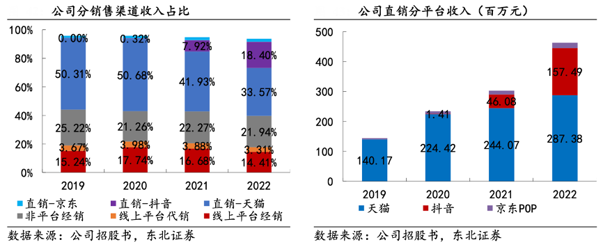 經典案例:根據公司招股書、東北證券等綜合資訊表明,潤本目前以天貓、京東、拼多多和抖音等電商平臺銷售為主,其中最早布局天貓平臺,通過長期渠道建設,逐漸掌握成熟的線上運作模式,并積累起龐大的線上客戶資源,市場份額快速提升,潤本品牌 2020-2022 年連續(xù)三年在天貓平臺的蚊香液銷售額排名第一,市占率分別為 16.42%、18.32%、19.99%。