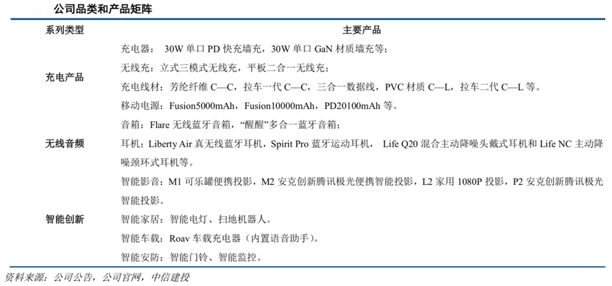 經典案例:根據公司公告、公司官網、中信建投等綜合資訊表明,安克創新2017-20 年收入由 28.33 億元增至41.44 億元,CAGR 為 13.5%。無線音頻類和智能創新類兩大新銳品類 2017-20年收入 CAGR 分別為44.6%、110.3%,2020 年收入分別 21.21 億元、30.59 億元,合計占比已超55%,反映公司多元化推進效果優異,尤其是智能創新類增長迅猛,2019年收入已超越無線音頻類,2020年繼續同比高增102.63%。