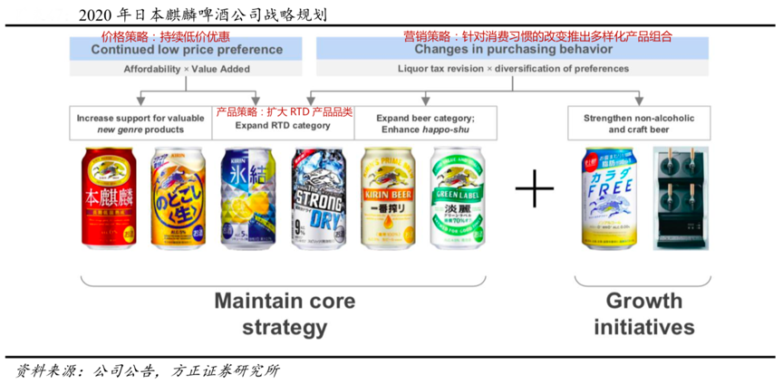 經典案例:根據公司官網、方正證券研究所等綜合資訊表明,2019年麒麟預調酒銷量達到 39 萬千升(6500 萬箱),同比增長 8.5%。在預調酒產品創新上,麒麟 RTD 的預調酒產品定價采取“低價高品質”策略,2020年推出超40 種新品(包括限定款、限量款以及更換包裝的產品)。
