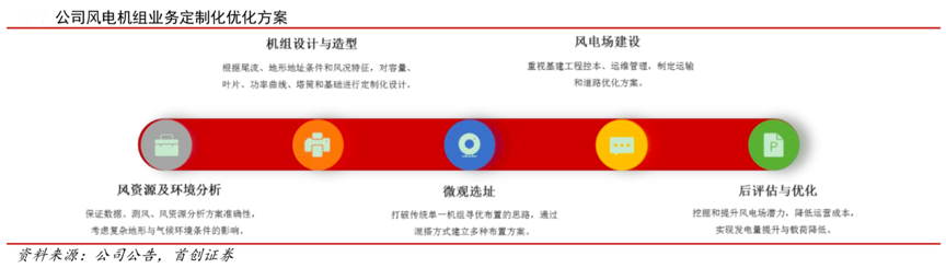 經(jīng)典案例:根據(jù)公司公告、首創(chuàng)證券等綜合資訊表明,近年來(lái),風(fēng)電場(chǎng)客戶的招標(biāo)從過(guò)去單純的產(chǎn)品招標(biāo),轉(zhuǎn)為風(fēng)電場(chǎng)建設(shè)“整體解決方案”招標(biāo)。為了提高該類風(fēng)電場(chǎng)的經(jīng)濟(jì)效益和開(kāi)發(fā)價(jià)值,明陽(yáng)智能公司針對(duì)風(fēng)電場(chǎng)特有的風(fēng)況特征、地形條件進(jìn)行定制化設(shè)計(jì)、對(duì)機(jī)組固有參數(shù)的輸入、既定基礎(chǔ)的設(shè) 計(jì)模式引入差異化的設(shè)計(jì),實(shí)現(xiàn)風(fēng)電場(chǎng)整體經(jīng)濟(jì)效益的提升——在風(fēng)電場(chǎng)整體投資不增加的情況下,提升發(fā)電量,降低度電成本。