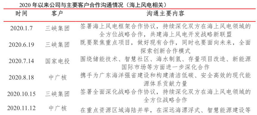 經典案例:根據公司公告、首創證券等綜合資訊表明,明陽智能公司已與全部主流發電集團簽署戰略合作協議或達成合作研究開發意向。其已與三峽集團簽署全 面深化戰略合作協議,雙方將攜手在東南沿海“海上三峽”開發布局、陸地大基地、科 技創新、聯合出海等相關領域開展更深入廣泛的合作,持續深化雙方在海上風電領域的全方位戰略合作。