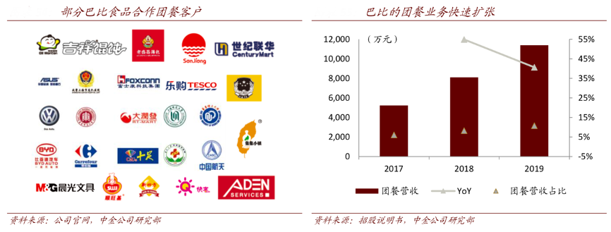 經(jīng)典案例:根據(jù)公司官網(wǎng)、招股說明書、中金公司研究部等綜合資訊表明,巴比食品合作團餐客戶眾多,團餐營收2017年-2019年間持續(xù)增長,其產(chǎn)品比較契合團餐用戶高性價比需求,可增長空間大。