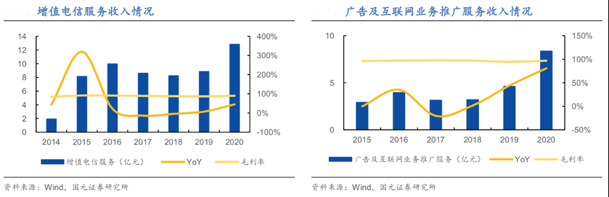 經典方法:根據wind、國元證券研究院等綜合資訊表明,同花順公司目前主要涵蓋四大核心業務:增值電信服務、廣告及互聯網業務推廣服務、軟件銷售及維護、基金銷售及其他交易手續費等其他業務。其近年主營業務保持穩健發展態勢,2018-2020年,增值電信服務營業收入 CAGR 達 24.93%,廣告及互聯網業務推廣服務營業收入CAGR 達 61.52%,其不斷豐富業務外延,深耕流量變現邏輯,業務發展更加多元化。