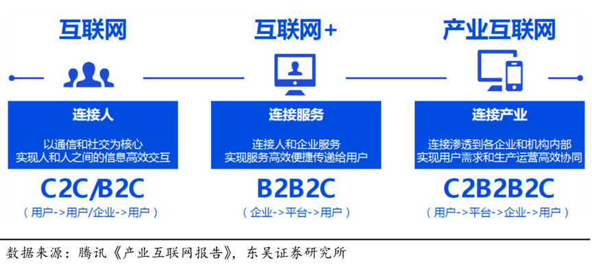 根據(jù)東吳證券研究所等綜合資訊表明,產(chǎn)業(yè)互聯(lián)網(wǎng)對傳統(tǒng)產(chǎn)業(yè)鏈的改造,在于其改變了傳統(tǒng)規(guī)模化成長的產(chǎn)業(yè)鏈條,將智能終端分布于企業(yè)經(jīng)營策劃、品牌營銷策劃運營及用戶消費等各個層面,通過數(shù)據(jù)收集、反饋、洞察、再賦能等全鏈條數(shù)據(jù)化管理,強化數(shù)字化、智能化對產(chǎn)業(yè)互聯(lián)網(wǎng)發(fā)展的巨大驅(qū)動作用,真正實現(xiàn)“科技賦能”產(chǎn)業(yè)互聯(lián)網(wǎng)。
