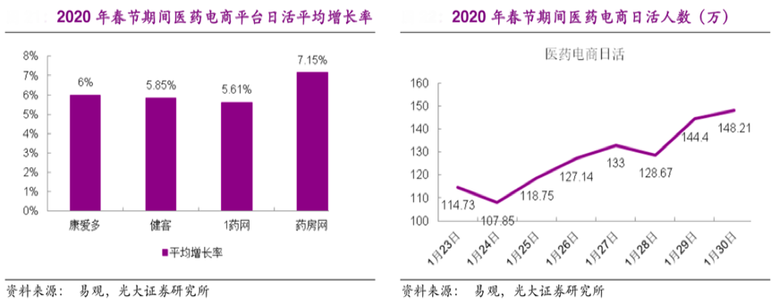 經典案例:根據易觀、光大證券等綜合資訊顯示,2020 年春節期間,互聯網醫療在線問診領域獨立 APP 日活最高峰達到了 671.2 萬人,最大漲幅接近 160 萬人,漲幅 31.28%。