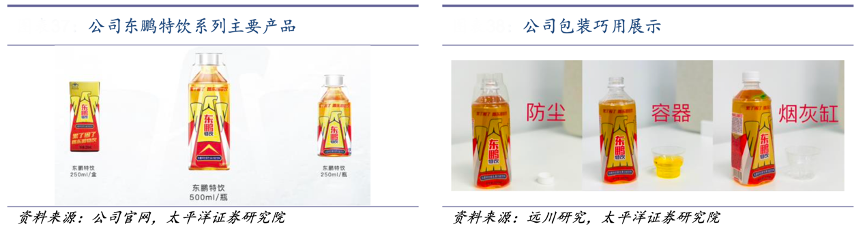 經典案例:根據公司官網、遠川研究、太平洋證券研究院等綜合資訊表明,相比提神、補充體力的效果來看東鵬 500ml 金瓶會優于紅牛 250ml 紅罐,而能量飲料功能效果需求大于口感口味需求,大容量、高性價比、強功效的東鵬 500ml 金瓶更能滿足長時間工作的藍領人群需求。