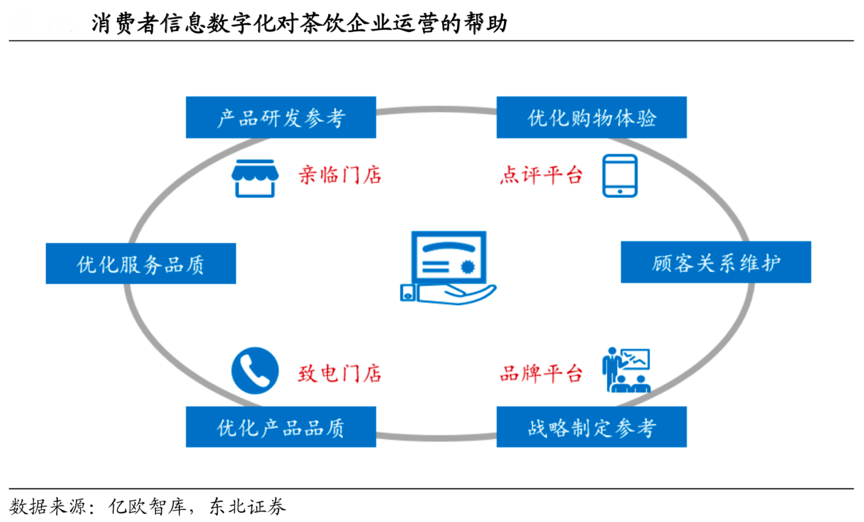 經(jīng)典案例:根據(jù)億歐智庫、東北證券等綜合資訊表明,新式茶飲企業(yè)逐漸開始搭建自主平臺(tái)(網(wǎng)站/App/小程序等),提供更多功能如提前點(diǎn)單、積分兌換、專屬評(píng)價(jià)渠道等,更好地匯聚消費(fèi)者數(shù)據(jù)及意見,優(yōu)化消費(fèi)者購物體驗(yàn);通過在自主平臺(tái)的前端設(shè)置口味選項(xiàng)(冷熱/甜度 /濃度等),做到千人千味。