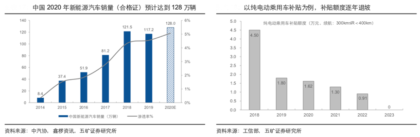 經(jīng)典案例:根據(jù)中汽協(xié)、鑫欏資訊、工信部及五礦證券研究所等綜合資訊表明,2020 年 10 月 24 日,上海市出臺更加嚴(yán)厲的外地牌照車輛限行政策,結(jié)合上海針對非營運(yùn)車輛免費(fèi)發(fā)放新能源專用牌照政策,間接給予新能源汽車出行的路權(quán)支持。目前中國新能源汽車的保有量尚不足2%,在補(bǔ)貼退坡后,各類消費(fèi)扶持政策以及模式創(chuàng)新(例如車電 分離) 有望接力,調(diào)動對于燃油車的置換需求 。