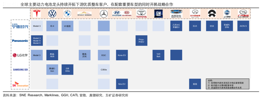 經(jīng)典案例:根據(jù)SNE Research、Marklines、GGII、CATL官微、真鋰研究及五礦證券研究所等綜合資訊表明,聚焦國內(nèi)動力電池市場,已呈現(xiàn)“全球競爭,強(qiáng)者恒強(qiáng),多元機(jī)遇”的特征。其中,LG化學(xué)利用在高鎳領(lǐng)域的優(yōu)勢以及配套特斯拉 Model 3 等重點(diǎn)車型,2020 年在中國市場打下舉足輕重的份額(1-9 月市占率約 14%),而寧德時代、比亞迪等中國本土的動力電池領(lǐng)軍企業(yè)也勢頭不減,2021年將加速擴(kuò)張。同時,在政策與終端需求的指引下,例如功率型、快充型電 池等細(xì)分產(chǎn)品也迎來需求機(jī)遇,產(chǎn)品體系的多元將帶來更多差 異化的機(jī)會。