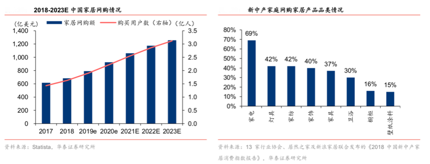 優秀的家居賣場新零售經營需要亮化“家居產品品質”,提升家居新零售電商的價值,放大家居電商的直播、短視頻、數字營銷策劃活動等全方位體驗,提升品牌對家居品質消費的引領,助推“網購家居滲透率”的擴張,消費者網購時傾向購買標準程度高、安裝簡單的家居產品品類。根據13家行業協會、居然之家、新浪家居等綜合資訊表明,線上購物的新中產家庭網購的家居品類大多是標準化程度高、安裝簡單的家居產品品類(69%網購過家電,42%網 購過燈具、家紡,僅有 15%網購過壁紙、涂料)。