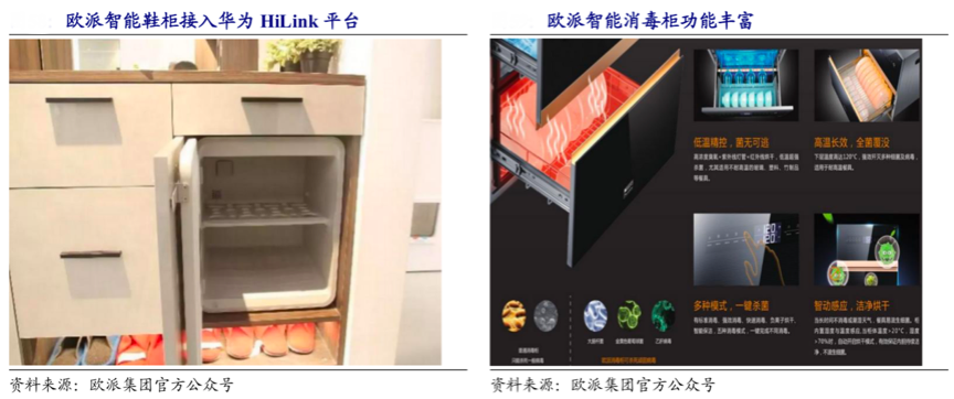 經(jīng)典案例:根據(jù)公司公告、開源證券研究所等綜合資訊表明,2019 年 8 月,歐派與華為達成戰(zhàn)略簽約,歐派家居將全面對接華為 HiLink 平臺,推 進在家裝領域的智能化進程。在線下渠道,歐派將主推華為 HiLink 生態(tài)產(chǎn)品及全屋 智能家裝方案,并聯(lián)合探索線下渠道營銷全屋智能方案套包。