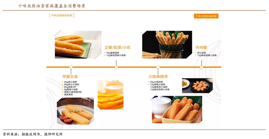 經典案例:根據招股說明書、德邦研究所等綜合資訊表明,千味央廚公司依托現有產品進 行場景化的深入研究,研發出適應不同消費場景的系列產品。以油條為例,公司從 2012 年開始進行油條細分場景下的市場研究,細分出火鍋、快餐、自助餐、宴席、早餐、外賣六大場景,并針對性推出茴香小油條、麻辣燙小油條、火鍋涮煮油條、外賣專用油條等多款創新性產品。