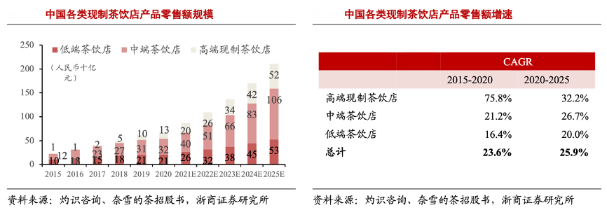 經(jīng)典案例:根據(jù)灼識(shí)咨詢(xún)、奈雪的茶招股書(shū)、浙商證券研究所等綜合資訊表明,從零售額占比來(lái)看,2020 年中國(guó)高端現(xiàn)制茶飲零售額占中國(guó)整體現(xiàn)制茶飲的 19.7%,截至 2020 年 12 月 31 日,中國(guó)約有 34.8 萬(wàn)間現(xiàn)制茶飲店,其中高端現(xiàn)制茶飲店約 3400 家,中端約 14.15 萬(wàn)家,低端約 20.35 萬(wàn)家,高端門(mén)店數(shù)量占比約1%,結(jié)合零售額占比,高端茶飲店平均店效遙遙領(lǐng)先。