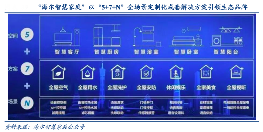 經(jīng)典案例:根據(jù)海爾智慧家庭公眾號(hào)、華創(chuàng)證券等綜合資訊表明,卡薩帝積極推動(dòng)高端套系產(chǎn)品融入三翼鳥家居生態(tài)戰(zhàn)略,以場(chǎng)景替代產(chǎn)品,對(duì)應(yīng)推出不同的高端智慧成套方案,并配合海爾主品牌產(chǎn)品,涵蓋智慧客廳、智慧廚房、智慧臥室等 5 大生活場(chǎng)景,并配合用電用水等 7 大全屋解決方案,對(duì) N 個(gè)生活場(chǎng)景個(gè)性化運(yùn)用。例如廚房場(chǎng)景中卡薩帝冰箱除了能讓食材控氧保鮮外,還能通過(guò)分析食材數(shù)據(jù)推薦菜單,而根據(jù)菜譜灶具可以智能控火,無(wú)需人為照看。