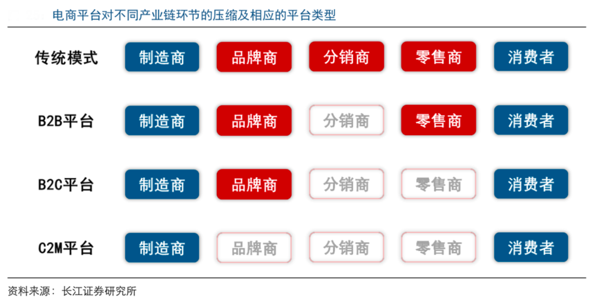 經典案例:根據長江證券研究所等綜合資訊表明,C2M 模式則將進一步壓縮品牌商環節,使得制造商直接觸達消費者;同時,考慮到基于 B2B、B2C 平臺運營的技術和數據積累,可以說,基于電商平臺的中間環節壓縮是推進 C2M 模式的最優路徑之一。