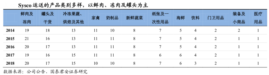經(jīng)典案例:根據(jù)公司公告、公司官網(wǎng)、國(guó)泰君安證券研究等綜合資訊表明,Sysco 是北美最大的生鮮 B2B 企業(yè),年?duì)I收約 4000 億人民幣。Sysco (西斯科)是北美最大的生鮮 B2B 企業(yè),網(wǎng)絡(luò)遍及美國(guó)、阿拉斯加和加 拿大等,為餐廳、飯店、醫(yī)院和學(xué)校提供生鮮產(chǎn)品,包括鮮凍肉、海鮮、 家禽、蔬菜、水果、零食以及環(huán)保餐具廚房用品等。