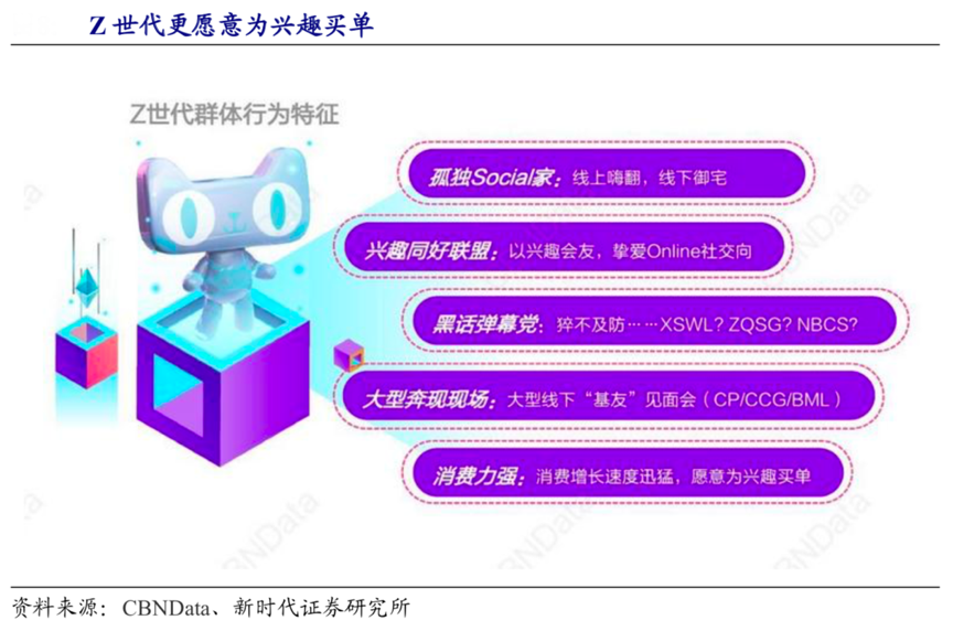 經典案例:根據CBNData、新時代證券研究所等綜合資訊表明,近年來中國飛速發展, Z 世代更愿意為符合自己價值觀的東西買單,為興趣和情感代入感強的產品買單,也越來越多地關注產品背后的故事。其經常為以精神消費為驅動的實體消費,如明星周邊、IP 手辦等,這正是泡泡瑪特們迅猛發展的營銷價值基礎,也正是潮玩行業最具營銷特色的地方之一。