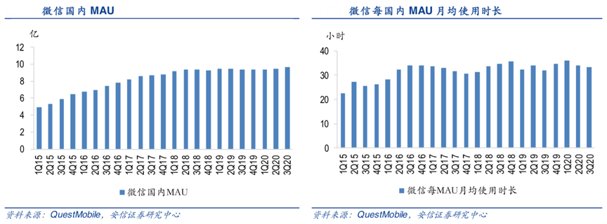 經(jīng)典案例:根據(jù)QuestMobile、安信證券研究中心等綜合資訊表明,微信有著龐大的用戶基數(shù)和強(qiáng)大的社交基因,截至 3Q20 微信國內(nèi) MAU 已達(dá) 9.7 億,同期每 MAU 月均使用時(shí)長為 33 小時(shí),小程序、公眾號、朋友圈等業(yè)態(tài)在 助 力 商 家沉淀私域流量方面具備突出優(yōu)勢。2020年以來微信加速了其商業(yè)化生態(tài)建設(shè)的步伐,2 月小程序公測直播功能,微信數(shù)據(jù)顯示截 至 9 月已有 10 萬商家開通了小程序直播。