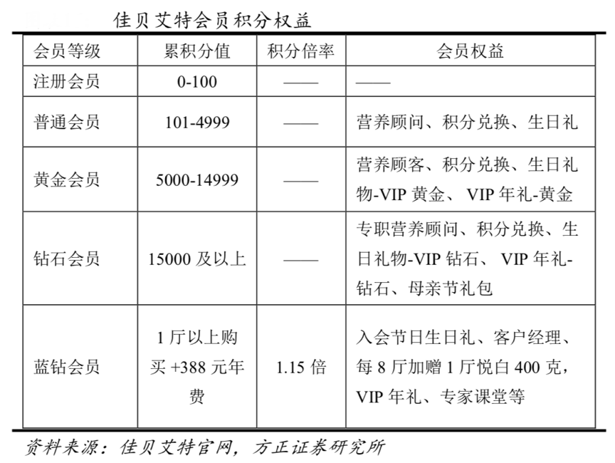 經典案例:根據佳貝艾特官網、方正證券研究所等綜合資訊表明,澳優多年深度經營會員體系,深度合作線下門店,對所有用戶進行積分管理制度。以深度合作的母嬰門店為核心入口,進行會員數據的全 面收集,并基于數據進行精準營銷,營造社群分為,強化會員粘性,尤其是通過“媽媽圈”母嬰論壇創造口碑效應。