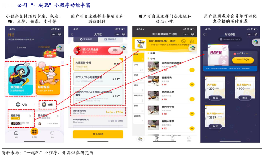經典案例:根據“一起玩”小程序、開源證券研究所等綜合資訊表明,騰訊視頻好時光娛樂街區基于“一起玩”小程序建立了超級會員體系,小程序一方面支持預約卡座、包房、VR、點餐、領券、支付等, 能夠提供便捷線上服務,另一方面能夠通過會員、積分等營銷體系沉淀會員,培養忠實付費用戶,并積累注冊用戶的游戲價格、游戲時間、游戲類型偏好等行為數據,培養私域流量,為線上精準買量打下扎實基礎。