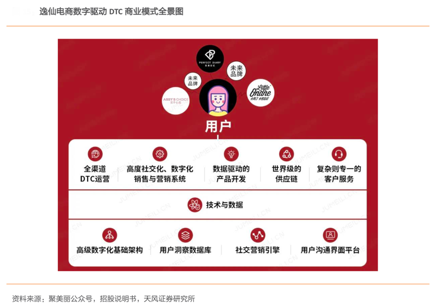 經(jīng)典案例:根據(jù)聚美麗公眾號、招股說明書、天風證券研究所等綜合資訊表明,逸仙電商借助 DTC 商業(yè)模式直面消費者,并有效借助 KOL 和明星等高度社交化的互動式營銷與客戶產(chǎn)生互動,收集有關客戶行為及偏好的數(shù)據(jù),挖掘出對客群的深刻見解,再借助強有力的后臺數(shù)據(jù)支撐、世界一流的供應鏈保證和 DTC 全渠道營銷支持,快且有效地打造出暢銷品牌。