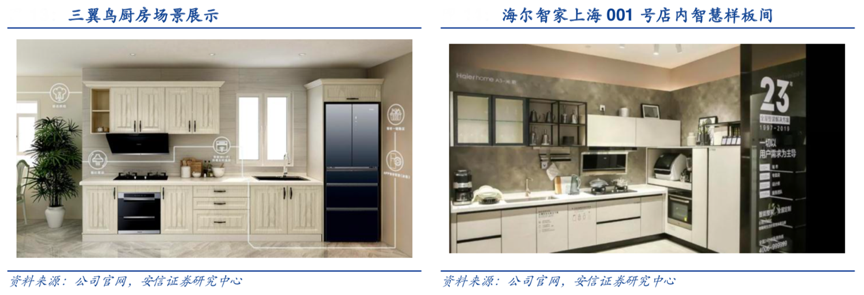 經(jīng)典案例:根據(jù)公司官網(wǎng)、安信證券研究中心等綜合資訊表明,2020 年 9 月,海爾發(fā)布了全球首個場景品牌——三翼鳥。區(qū)別于傳統(tǒng)的產(chǎn)品品牌,三翼鳥可以為用戶提供涵蓋陽臺、廚房、客廳、浴室、臥室等智慧家庭全場景定制化解決方案。其旨在滿足消費者全空間、全維度、全流程的場景生活需求,進一步拉動海爾多品類協(xié)同銷售。