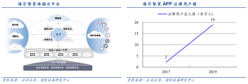 經(jīng)典案例:根據(jù)公司公告、安信證券研究中心等綜合資訊表明,2019年底海爾上線了自主研發(fā)的海爾智家體驗云平臺,實現(xiàn)了用戶、經(jīng)銷商及其門店的數(shù)字化系統(tǒng)的連接和整合,幫助海爾從銷售家電產(chǎn)品到銷售以互聯(lián)家電為核心的更豐富的產(chǎn)品和服務(wù)。截至 2020 年 6 月,海爾智家 APP 月活躍用戶達到 429 萬。