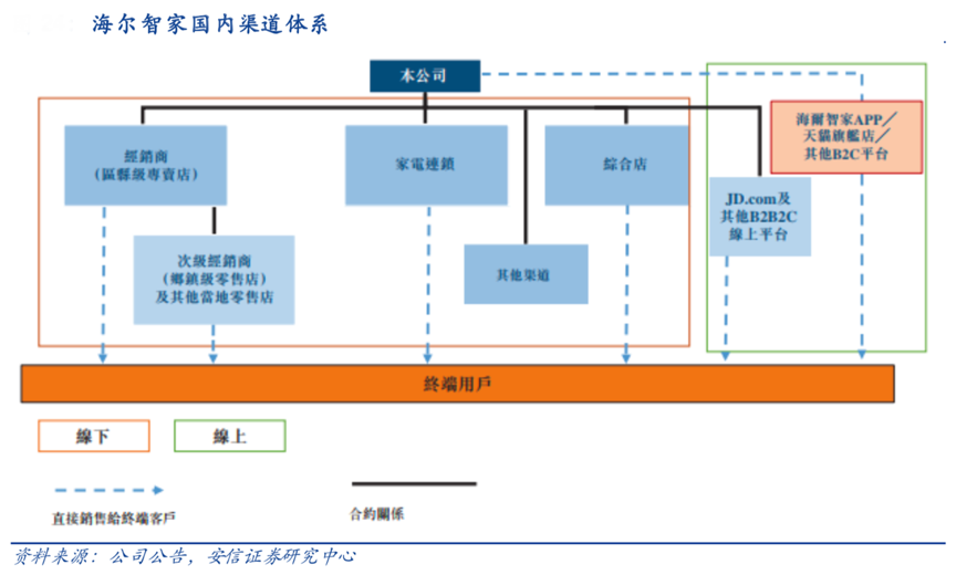 經(jīng)典案例:根據(jù)公司公告、安信證券研究中心等綜合資訊表明,截至 2020 年 6 月 30 日,海爾在中國(guó)擁有 7000 多家可提供全套智慧家庭產(chǎn)品及解 決方案的區(qū)縣級(jí)專賣店及 3000 多家以精選產(chǎn)品線為重點(diǎn)的區(qū)縣級(jí)專賣店,發(fā)展了 14000 多 家鄉(xiāng)鎮(zhèn)級(jí)專賣店及近 9000 家鄉(xiāng)鎮(zhèn)級(jí)當(dāng)?shù)亓闶鄣辏灿?jì)擁有 33000 家門店。