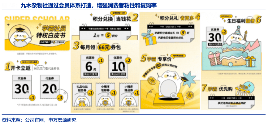經(jīng)典案例:根據(jù)晨光天貓官方旗艦店、申萬(wàn)宏源研究等綜合資訊表明,2022 年九木雜物社自研會(huì)員系統(tǒng)上線,包括會(huì)員小程序商城,會(huì)員運(yùn)營(yíng)管理、會(huì)員數(shù)據(jù)管理、社會(huì)化營(yíng)銷工具包。通過線上公域和私域的運(yùn)營(yíng),提升九木雜物社 DTC 的消費(fèi)者觸達(dá)能力,線上公域電商穩(wěn)定 增長(zhǎng),拼多多、抖音、社區(qū)電商、小程序等新型渠道持續(xù)增長(zhǎng),重點(diǎn)發(fā)力私域社群運(yùn)營(yíng)及 到家社區(qū)電商。