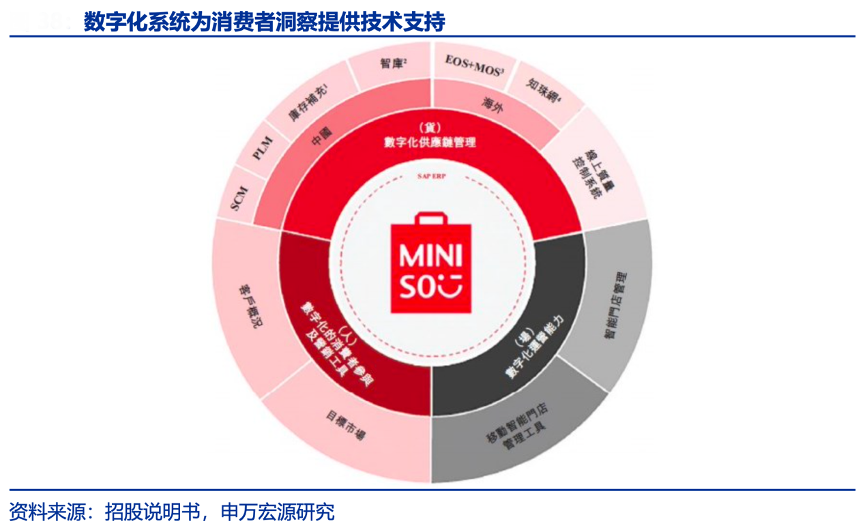 經(jīng)典案例:根據(jù)招股說(shuō)明書(shū)、申萬(wàn)宏源研究等綜合資訊表明,名創(chuàng)優(yōu)品依托 EOS 全球知識(shí)共享平臺(tái)、MIS 海外工作平臺(tái)、CRM 會(huì)員系統(tǒng)、社會(huì)輿情管控系統(tǒng)等,整合覆蓋超 7000 萬(wàn)注冊(cè)會(huì)員和超 3000 萬(wàn)私域用戶(hù)的大數(shù)據(jù)資源(數(shù)據(jù)來(lái)自騰訊新聞),結(jié)合外派員工的本地化調(diào)研及三方數(shù)據(jù)合作,提升消費(fèi)市場(chǎng)需 求洞察能力,確保 IP 本土化的科學(xué)性和實(shí)效性。