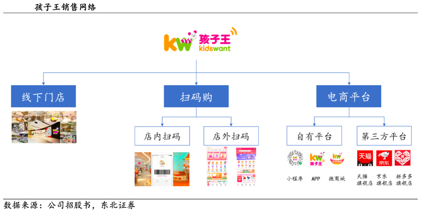 經(jīng)典案例:根據(jù)公司公眾號、天貓旗艦店、東北證券等綜合資訊表明,孩子王公司拓展出線下門店、掃碼購和電商平臺三大銷售渠道,通過終端門店、APP、微信小程序、微信公眾號、O2O 平臺、電商平臺建立起全渠道服務(wù)平臺,實現(xiàn)用戶的多方位導(dǎo)入和多模式的協(xié)同發(fā)展。