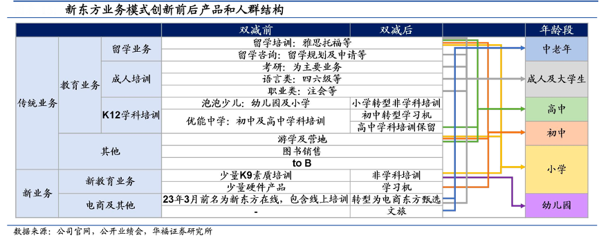 經(jīng)典案例:根據(jù)公司官網(wǎng)、公開業(yè)績(jī)會(huì)、華福證券研究會(huì)等綜合資訊表明,新東方新業(yè)務(wù)中電商和文旅部分,則是以新東方大 IP 為基礎(chǔ),迎合學(xué)生及家長(zhǎng)的多層次需求,向上進(jìn)行年齡層的延伸,一方面直接為公司貢獻(xiàn)增量業(yè)績(jī),另一方面助力集團(tuán)進(jìn)行商業(yè)版圖的擴(kuò)張。