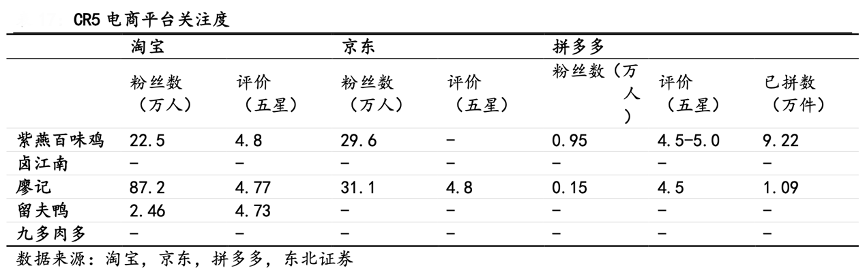 經(jīng)典案例:根據(jù)淘寶、京東、拼多多、東北證券等綜合資訊表明,紫燕食品入駐電商平臺,建立直營旗艦店。2010 年,中國開始進(jìn)入電商時代,公司成為佐餐鹵制品品牌入駐電商平臺的領(lǐng)軍者,于 2014 年進(jìn)軍淘寶、京東等電商平臺設(shè)立旗艦 店,隨后于 2018 年入駐當(dāng)時電商界冉冉之星——拼多多,主要售賣預(yù)包裝產(chǎn)品。