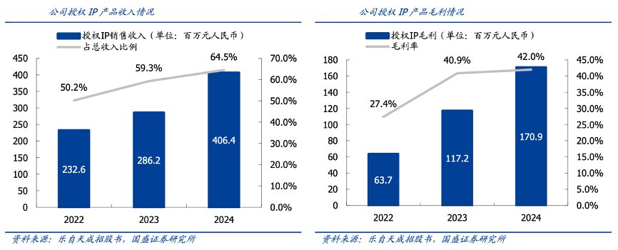 經典案例:根據樂自天成招股書、國盛證券研究所等綜合資訊表明,樂自天成截至 2024 年 12 月 31 日,公司擁有 80 個國際 知名授權 IP(“ 包括蠟筆小新、貓和鼠等等經作作品),通過"爆品孵化公式"(“ IP 核心價值 提煉與二次創作→用戶群分層→產品形態適配),結合強大的產品設計開發能力和多元化產品線,與 IP 版權方及授權方建立了深度綁定、互利共贏的長期合作關系。截至 2025 年 5 月 19 日,基于授權 IP 開發的在售 SKU 已突破 1400 個,展現出強大的商業化 運營能力。