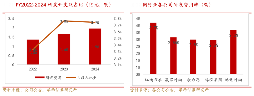 經(jīng)典案例:根據(jù) Euromonitor、Mob研究院、華西證券研究所等綜合資訊表明,江南布衣公司在線上線下全渠道布局的同時(shí),也提高了供應(yīng)鏈環(huán)節(jié)的快速追單反應(yīng)能力。根據(jù)界面新聞 9 月報(bào)道,根據(jù)公司 2024 財(cái)報(bào)會(huì)內(nèi)容,目前快反訂單的占比已經(jīng)超過(guò)了 12%,貢獻(xiàn)新增零售額超過(guò) 6.4 億元。公司 FY2024 公司存貨周轉(zhuǎn)天數(shù)為 153 天,顯著優(yōu)于同業(yè)可比公司。