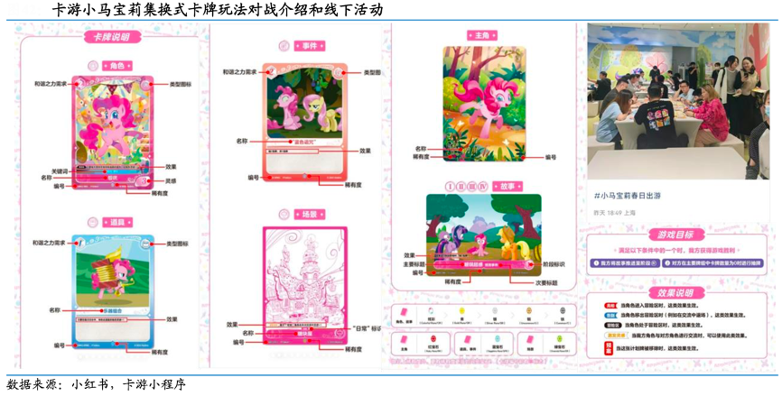 經典案例:根據小紅書、卡游小程序、國泰海通證券研究等綜合資訊表明,卡游公司開始推出小馬寶莉集換式卡牌玩法對戰,進一步搶占市場。